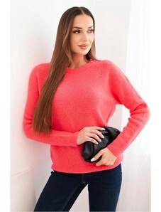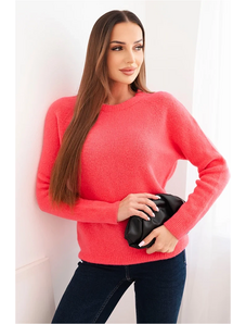 MladaModa Sveter z baby alpaky s dlhým rukávom model IT107 neónovo ružový