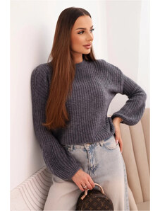 Kesi Włoski Dámsky sveter z baby alpaky s bufovanými rukávmi grafitový