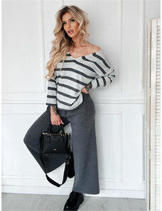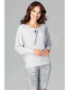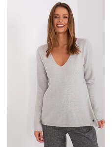 BASIC Svetlosivý dámsky rebrovaný sveter s prestrihom PM-SW-PM1082.03X-light grey