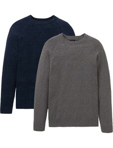Bonprix Jemne pletený pulóver z bavlny, 2 ks, farba šedá