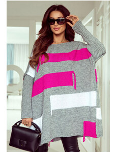 Fashionweek Luxusný voľný pletený sveter ako pončo s bočnými rázporkami JK-ZARA