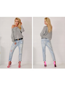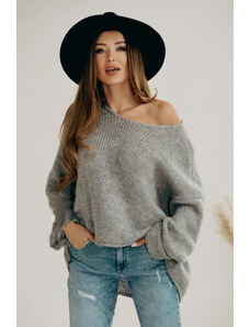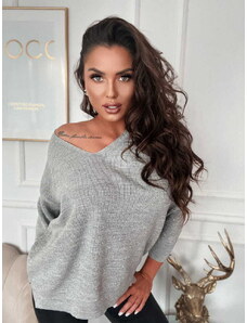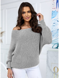 BASIC Sivý sveter s netopierími rukávmi PM-SW-PM-3588.00X-grey
