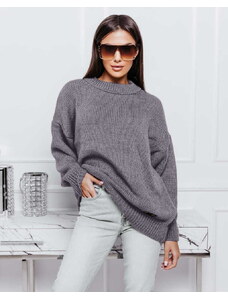 BASIC Tmavosivý dlhý sveter WX1964