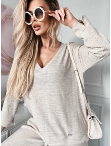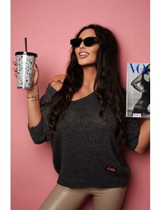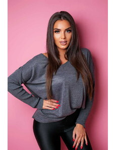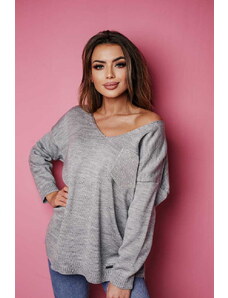 Fashionweek Sveter oversize s výstrihom s perleťovou niťou NB82227