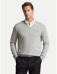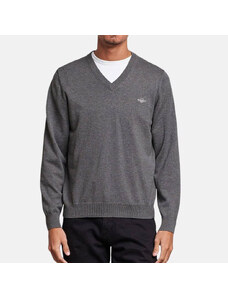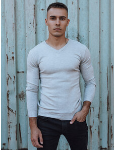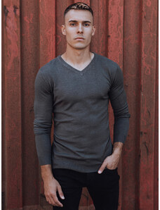 BASIC Sivý pánsky sveter s výstrihom do V WX2316