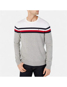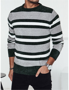 BASIC Sivý pánsky pruhovaný sveter WX2262