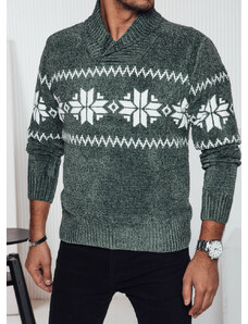 BASIC Tmavozelený pánsky štýlový sveter s nórskym vzorom WX2270