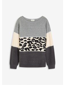 Bonprix Pulóver, oversize s osmičkovým vzorom, farba šedá