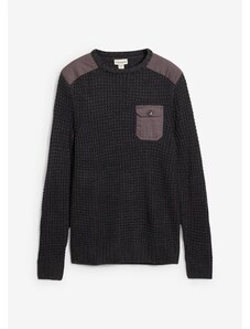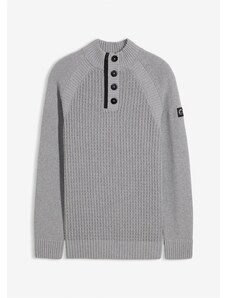 Bonprix Pulóver so stojačikom, hrubé pletenie, tkaná časť, farba šedá
