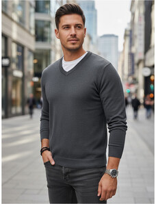 BASIC Tmavosivý pánsky sveter s výstrihom do V WX2219