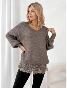 Fashionweek Pletený sveter s ozdobnými rukávmi a okrúhlym výstrihom NB5918