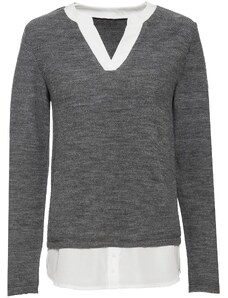 Bonprix Pletený pulóver s blúzkovými prvkami, farba šedá