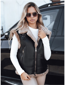 BASIC Dámska čierna semišová vesta s ovčou kožou WOOLZIP TY4742