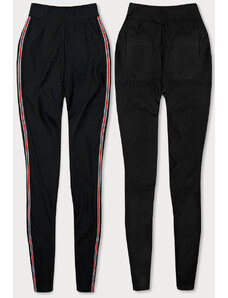 RUE PARIS Čierne rebrované legíny s vysokým pásom LO-LG-LK-535.10-black