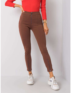 RUE PARIS Hnedé dámske legíny so zipsami 269-SP-0550.05-brown
