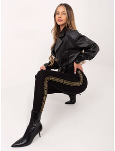 RUE PARIS Čierne dámske legíny so zlatými nápismi LA-LG-T-45.78P-black-gold