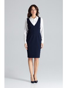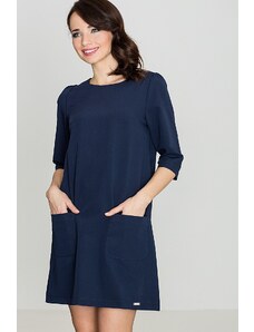LENITIF Tmavo modré šaty so zapínaním pri krku L001