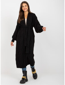 RUE PARIS Čierny pletený dlhý kardigán na zaväzovanie -LC-SW-8020.16P-black