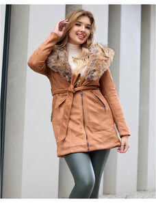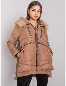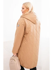 Kesi Włoski Dámska zimná prešívaná bunda Plus Size s kapucňou camelová