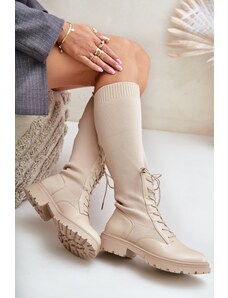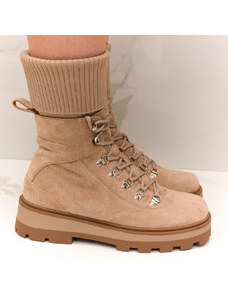 WDE Dámske béžové členkové čižmy s úpletovým nápletom Sierra