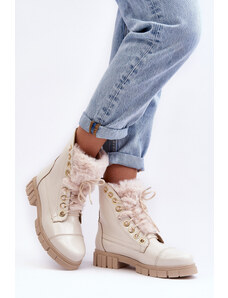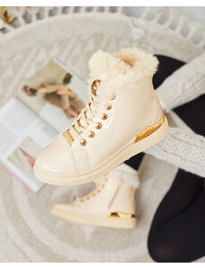 Boto Kožené dámske kožené topánky s jasnou béžovou kožušinou 3296