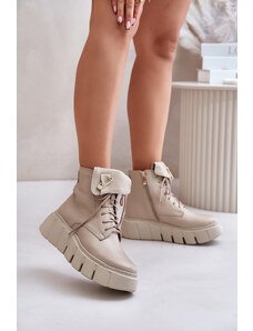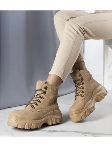 Kesi Béžové dámske členkové topánky na platforme z pravej kože Vinceza