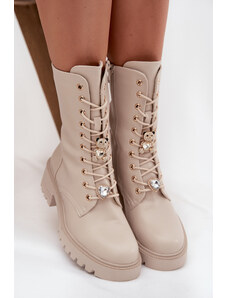 Dámska zateplená členková obuv so zdobením DA183P Beige - Seastar