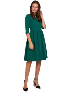- úzky výstrih - 3/4 rukávy - dĺžka po kolená - zapínanie na zips na chrbte Materiál: 65% polyester, 30% viskóza, 5% elastan