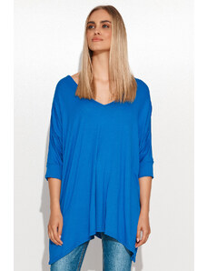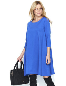 Makadamia Dámske šaty na denné nosenie vo voľnom strihu stredne dlhé modré - Modrá - Makadamové