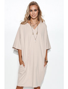 Denné šaty M835 béžové 4XL-5XL - Makadamia