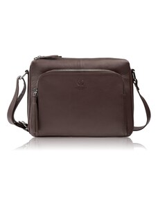 Paolo Peruzzi Dámska kožená taška cez rameno z hladkej kože | tmavohnedá KV-06-BR