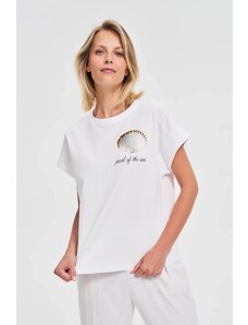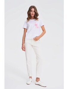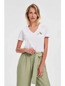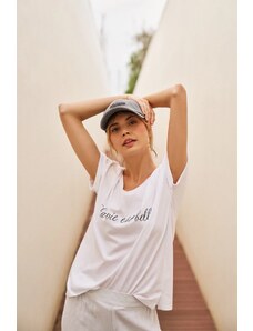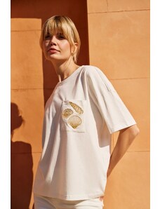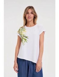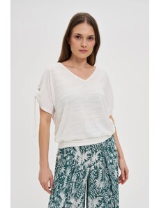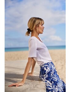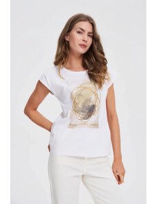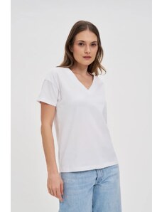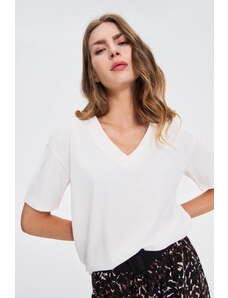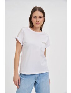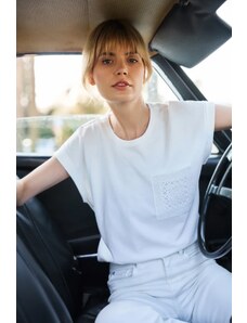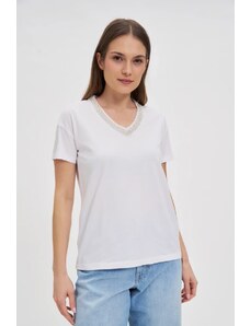 Marisse T-Shirt With Decorative Neckline, White
