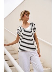 Marisse White Striped Cotton T-Shirt