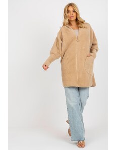 MladaModa Alpaka kabát model 905196 s netopierími rukávmi a zipsom farba camel