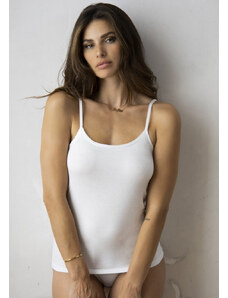 K-Fashion Dámske bavlnené tielko s okrúhlym výstrihom ecru