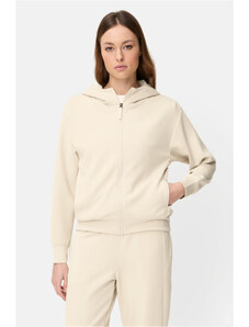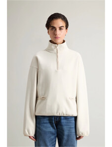 Dámska mikina voľného strihu, ktorá kombinuje vzhľad elegantnej bundy s pohodlím mikiny a je ideálna na vytvorenie ležérneho vzhľadu s rafinovanými detailmi. Jednofarebný dizajn s košeľovým golierom a zapínaním na dvojcestný zips dopĺňajú rebrované lemy a dve našité vrecká s chlopňou umiestnené na hrudi. Nechýba štítok s logom Woolrich našitý na ľavom boku. Materiálové zloženie s vysokým podielom bavlny zaručuje dokonalú mäkkosť a príjemný pocit pri nosení.
