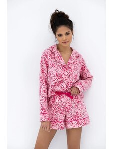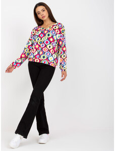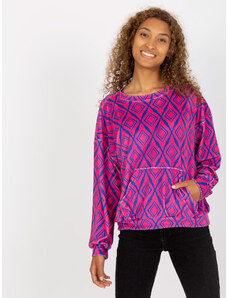 RUE PARIS Ružová dámska vzorovaná mikina s výstrihom RV-BL-8186.14X-pink