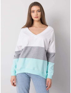 RUE PARIS Mintovo-biela dámska mikina s výstrihom RV-BL-5972.07-mint