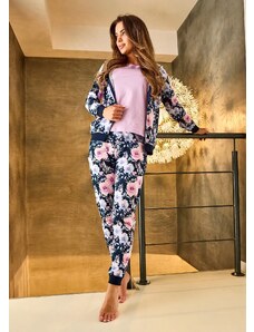 RUE PARIS Tmavomodrá kvetinová mikina RV-BL-8121.29-darkblue