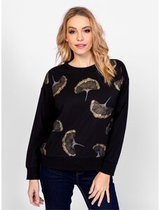 RUE PARIS Čierna kvetovaná bomber mikina -RV-BL-8121.29-black-yellow