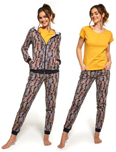 Numoco Dámska mikina s kapucňou 390-4 - béžová, čierna a modré vlny