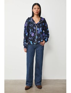 RUE PARIS Čierna kvetovaná mikina s kapucňou RV-BL-8118.89-black-pink