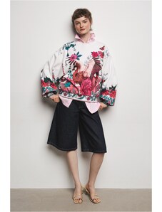RUE PARIS Biela mikina s kvetinovým vzorom RV-BL-8118.89-white-pink