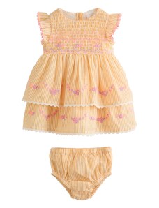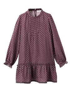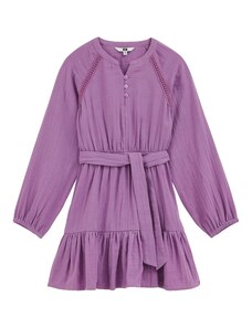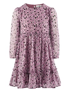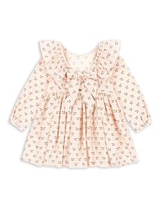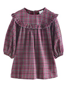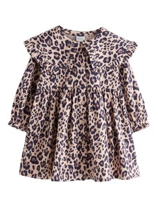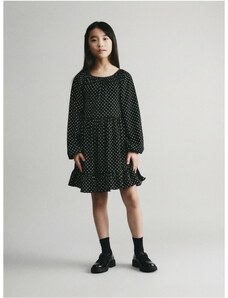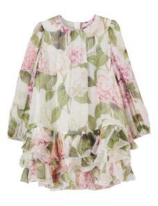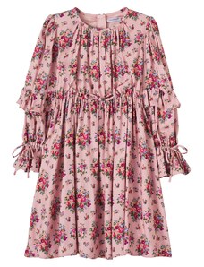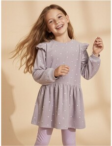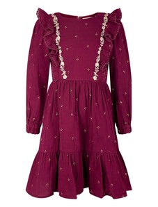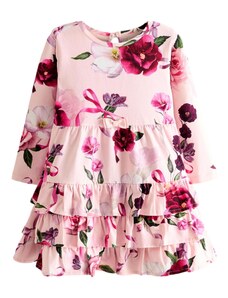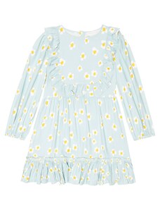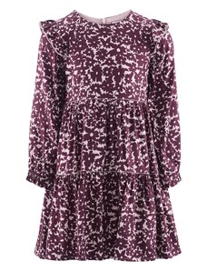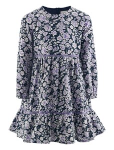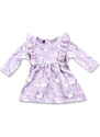 Nádherné dievčenské šaty na dlhý rukáv. Šaty sú ozdobené volánikmi a potlačou. V strede sú trošku nazbierané a zapínajú sa vzadu pri krku na jeden gombík. Šaty sú vyrobené z veľmi kvalitného hrubšieho materiálu a preto sú vhodné na chladnejšie dni.