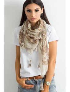 MladaModa Dámska šatka s etnickým vzorom a strapcami model CH7231 béžová