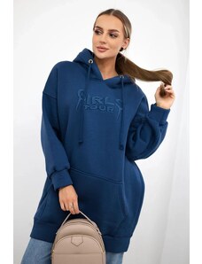 MladaModa Bavlnená mikina s kapucňou a klokankou HIT01 námornícka modrá