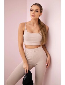 Top je vyrobený z vysoko kvalitného vrúbkovaného materiálu, tepláky sú z hladkého materiálu a majú šnurovanie v páse.