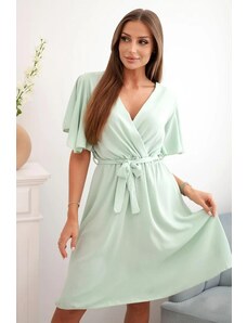 Krátke šaty s preväzom a véčkovým výstrihom sú elegantnou a ženskou voľbou, ktorá sa bude hodiť na mnohé príležitosti. Preložený výstrih dodáva šatám jedinečné čaro. Tento štýl šiat dokonale zvýrazní dekolt a dodá ženskosť a zároveň je veľmi jemný a štýlový. Šaty sú vyrobené z materiálu, ktorý je príjemný na dotyk a dobre sedia na postave. Je dokonalou voľbou pre ženy, ktoré si cenia eleganciu, ženskosť a jemný štýl. Tieto šaty sú ako stvorené na romantické rande, ale aj na formálnejšie príležitosti.