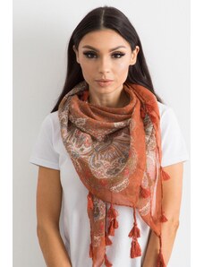 MladaModa Nariasená šatka so strapcami model 48172 hnedá