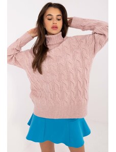 MladaModa Rolákový sveter s ažúrovým vzorom model 44500 pudrovo ružový
